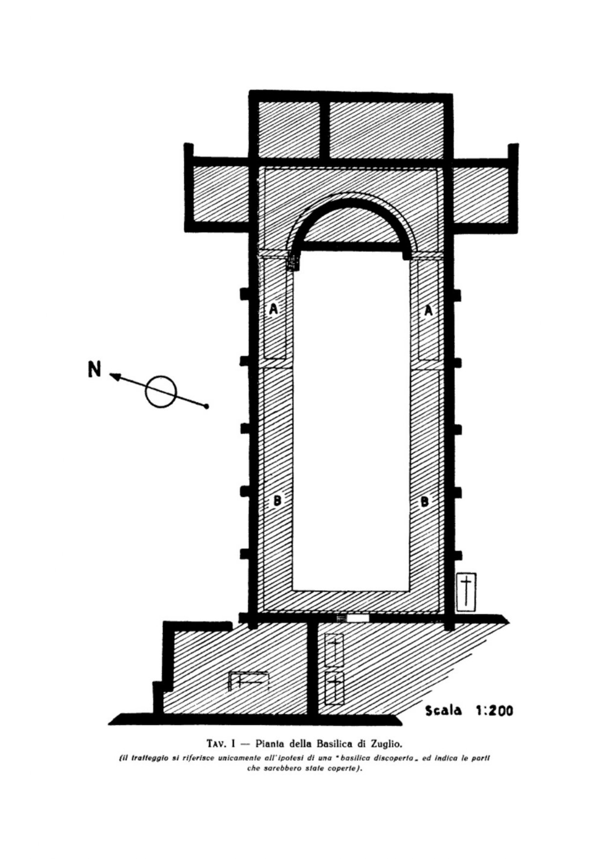 Nel 1874 Giovanni Gortani portò alla luce i resti di una basilica cristiana di straordinaria importanza. Una scoperta che rivelò pavimenti musivi, strutture monumentali e una pianta a croce latina, testimoniando l'antica centralità di Zuglio.